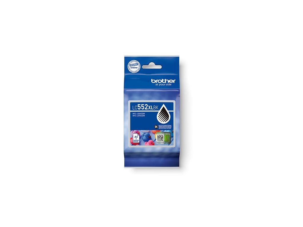 Černá inkoustová kazeta Brother LC552XLBK s vysokou výtěžností – jednotlivé balení. Vytiskne až 3 000 stran.Naplněno pigmentovým inkoustem pro ostré a detailní výtisky.